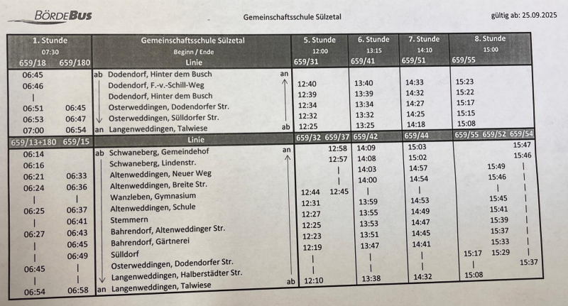 Fahrplan Schulbus